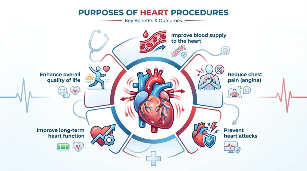 CABG improves blood flow to the heart, reduces chest pain (angina), lowers heart attack risk, improves heart function, and enhances overall quality of life in patients with severe coronary artery disease.